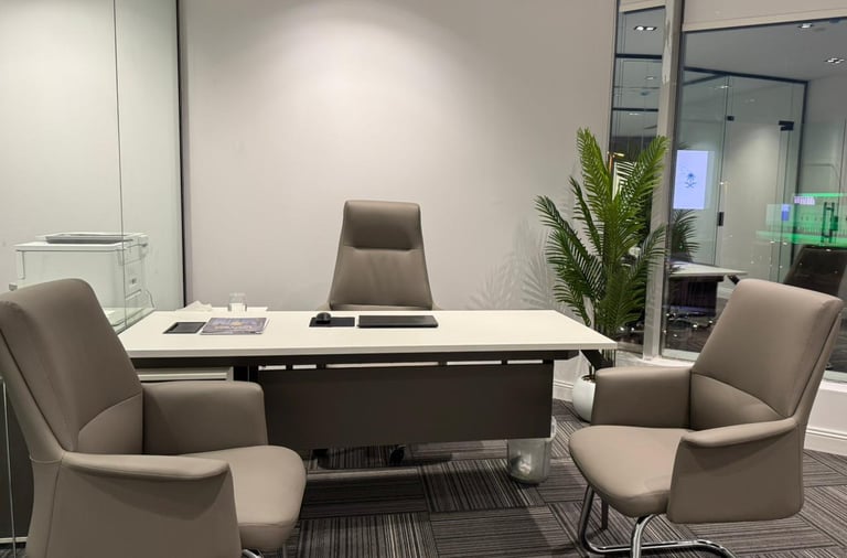 Independent offices with a modern partition system, offering you complete privacy, a contemporary design, and comprehensive office services. Ideal for companies and entrepreneurs seeking an organized and flexible work environment in a prime location.